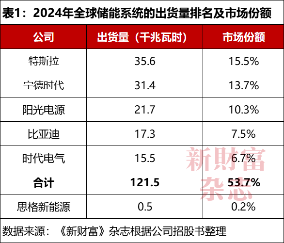 综合来看,前五名的市场份额为46.3%,思格新能源的份额只有0.2%,与之相差甚远。