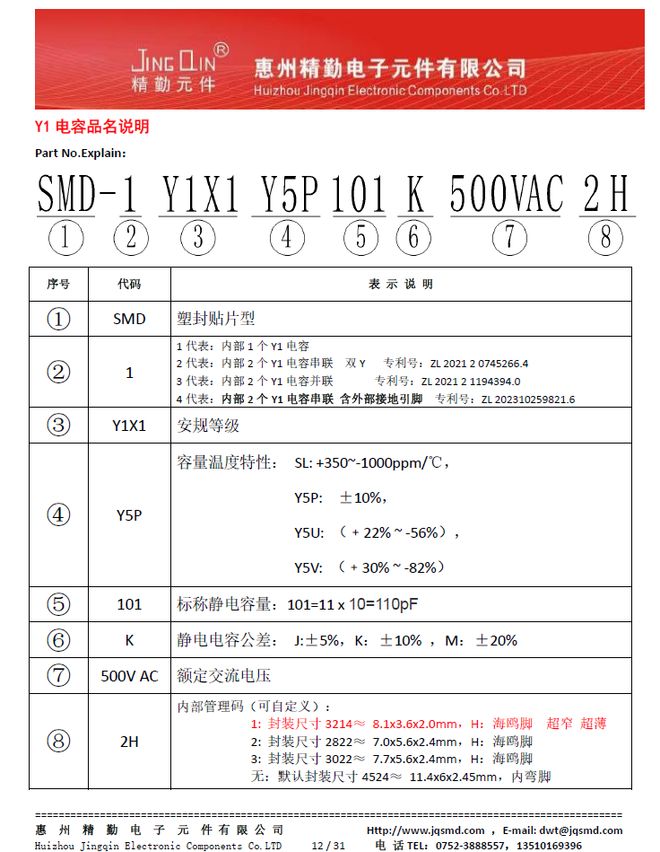 此外,精勤贴片Y1电容分为“内置1个Y1电容(SMD-1 Y1X1)、内置2个Y1电容串联(双Y)(SMD-2 Y1X1)以及2个Y1电容并联的高容产品(SMD-3 Y1X1)这三个系列可选,容量范围分别为10~2200pF、50~2200pF、100~4700pF,拥有多种材质和封装尺寸可选。
